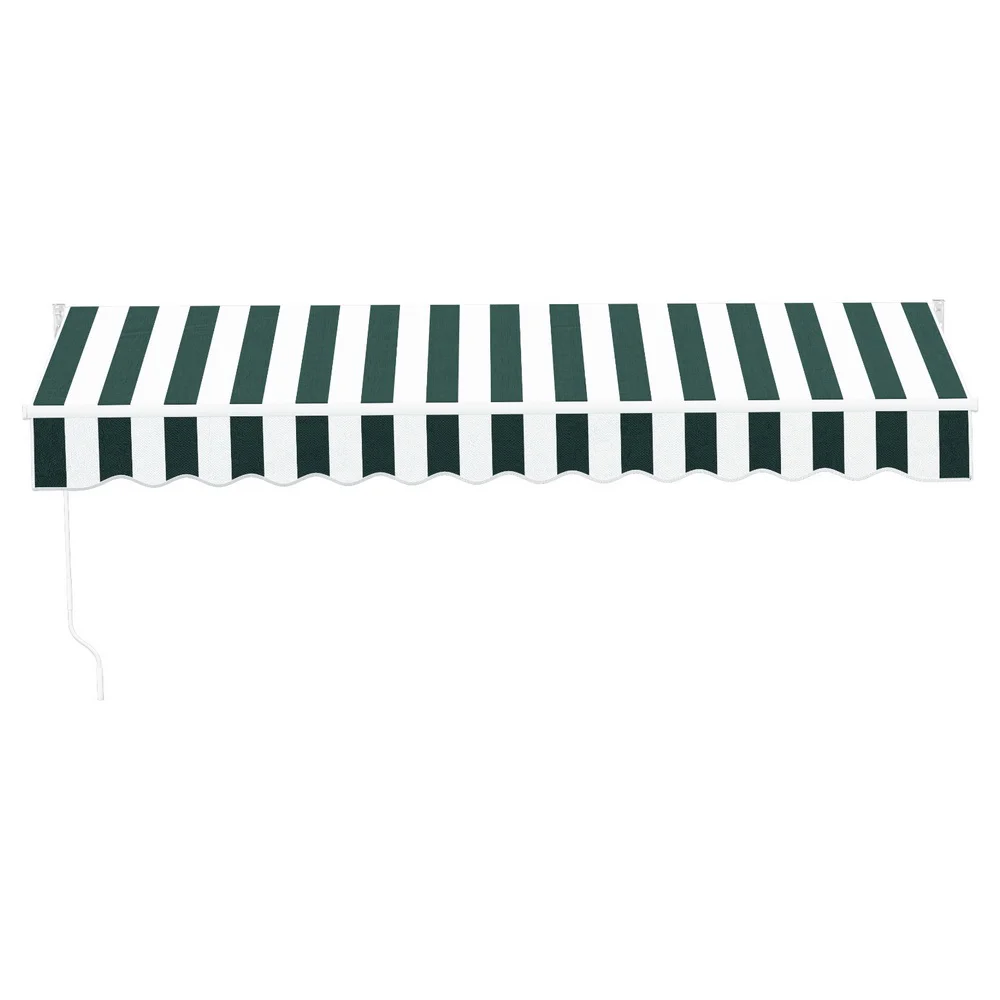 Instahut Retractable Folding Arm Awning 3Mx2.5M - Durable UV-Resistant Polyester Sunshade with Hand Crank in Green/White