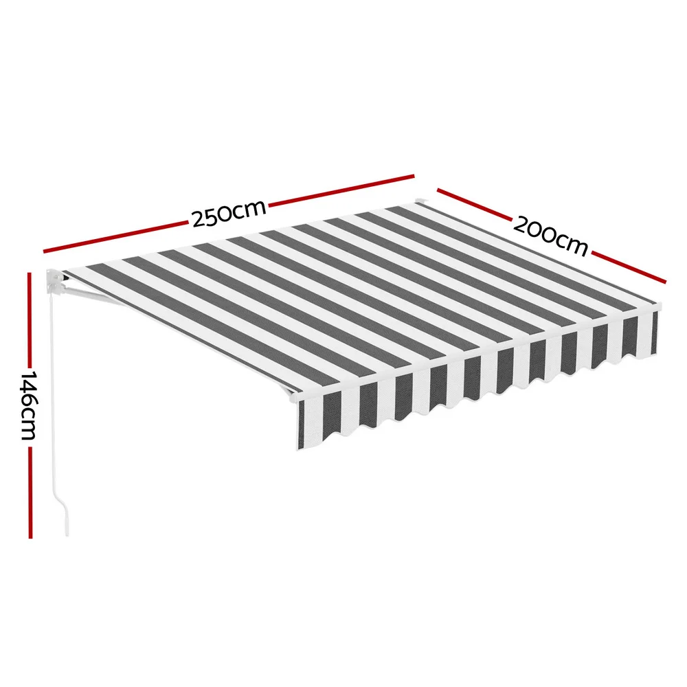 Instahut Retractable Folding Arm Awning 3Mx2.5M - Grey/White Manual Sunshade, UV-Resistant Polyester, Aluminium Frame