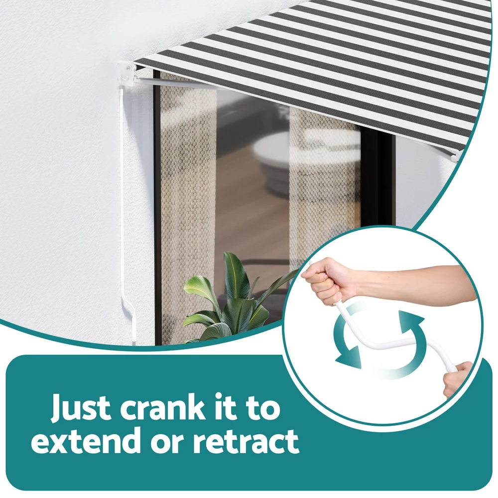 Instahut 4x2.5M Grey Manual Retractable Awning - UV-Resistant Polyester & Aluminium Frame, Includes Wall Brackets