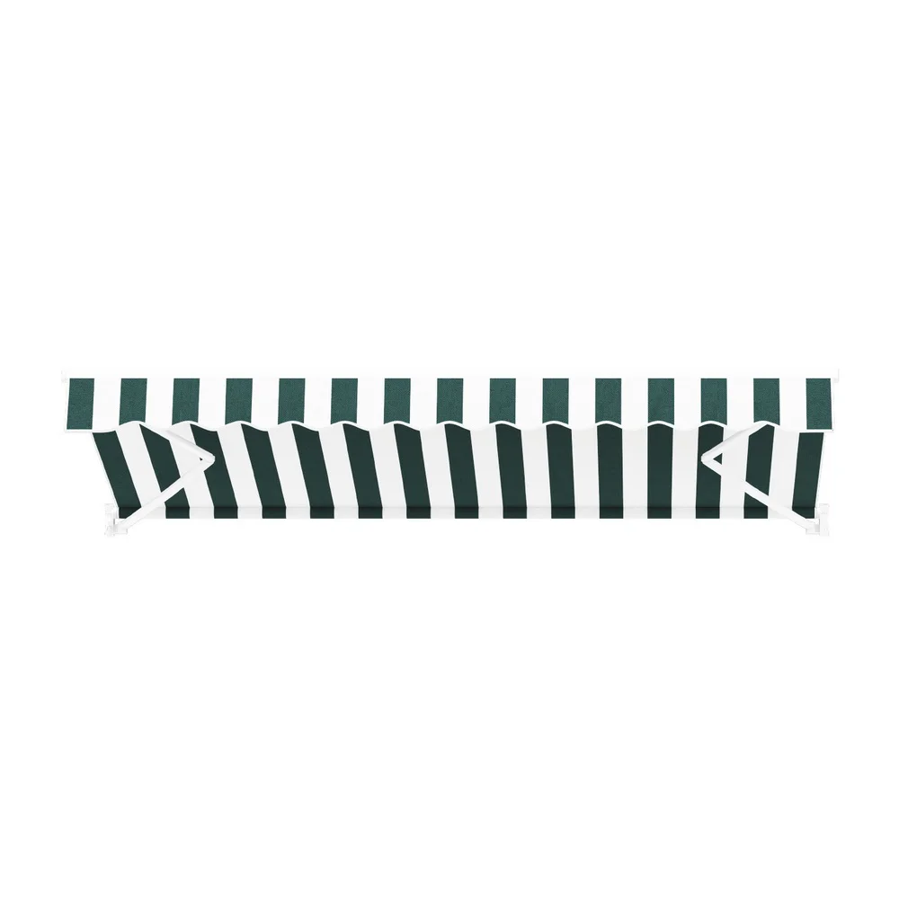 Enhance your outdoor space with the Instahut Retractable Folding Arm Awning Motorised Sunshade. Offering a generous 3m x 2.5m cover, this awning features a robust powder-coated aluminium frame and high-quality polyester fabric that is both UV and water-resistant, ensuring durability through varying weather conditions. Effortlessly extend or retract your shade with the included remote control or manual hand crank. Easy to install with wall brackets for brick or concrete, this stylish green and white awning is your perfect outdoor companion. Get yours today and enjoy a cool and comfortable environment.