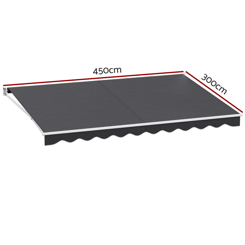 Instahut 4.5Mx3M Grey Retractable Folding Arm Awning, UV-Resistant Polyester, Manual Crank, Weather-Ready Shade