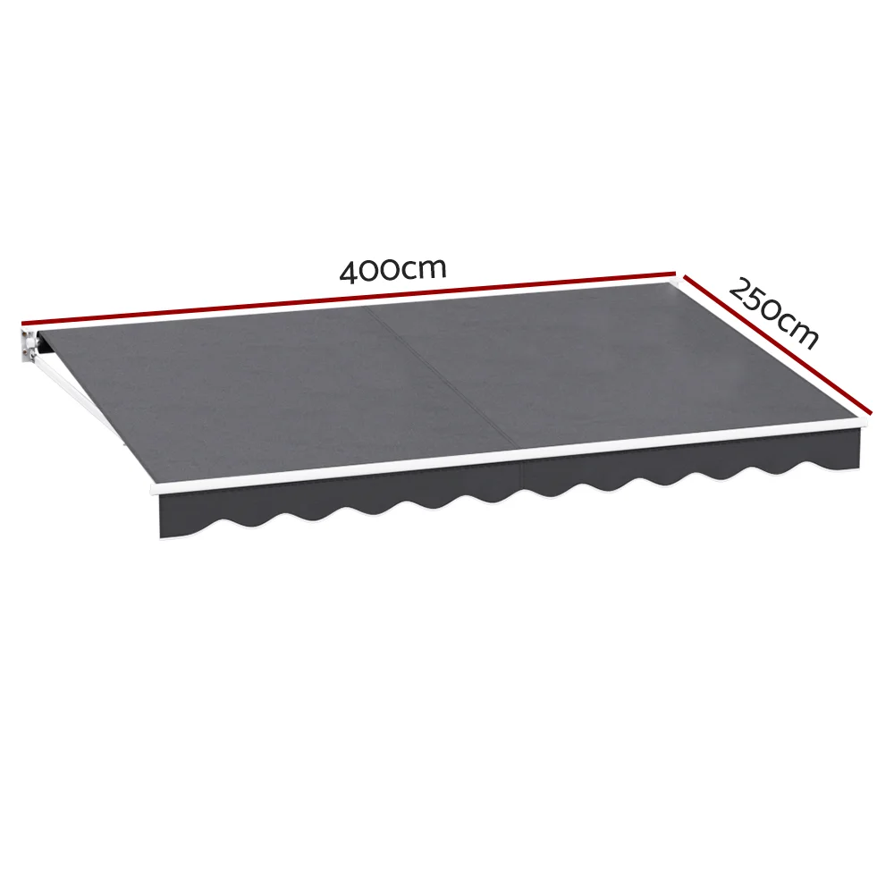 Instahut 4x2.5M Grey Manual Retractable Awning - UV-Resistant Polyester & Aluminium Frame, Includes Wall Brackets