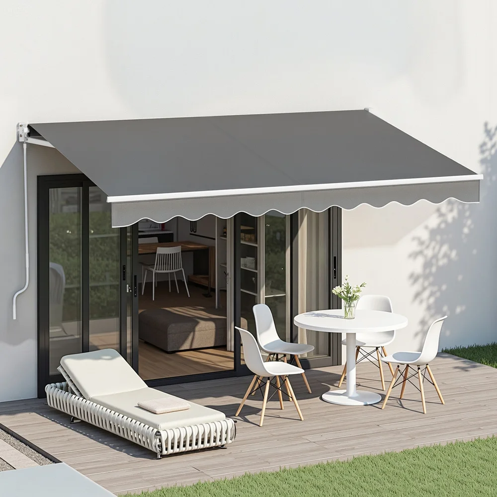 Transform your outdoor space with the Instahut Retractable Folding Arm Awning Motorised Sunshade. Measuring 3.5m x 2.5m, this sleek grey awning offers ample protection from sun and rain. Crafted with a powder-coated aluminium frame and high-quality polyester fabric, it's both UV and water-resistant. Enjoy effortless control with the included remote or manual hand crank. Mounting is a breeze with the provided wall brackets. Whether on your patio, garden, or terrace, create a cool, shaded retreat with ease.