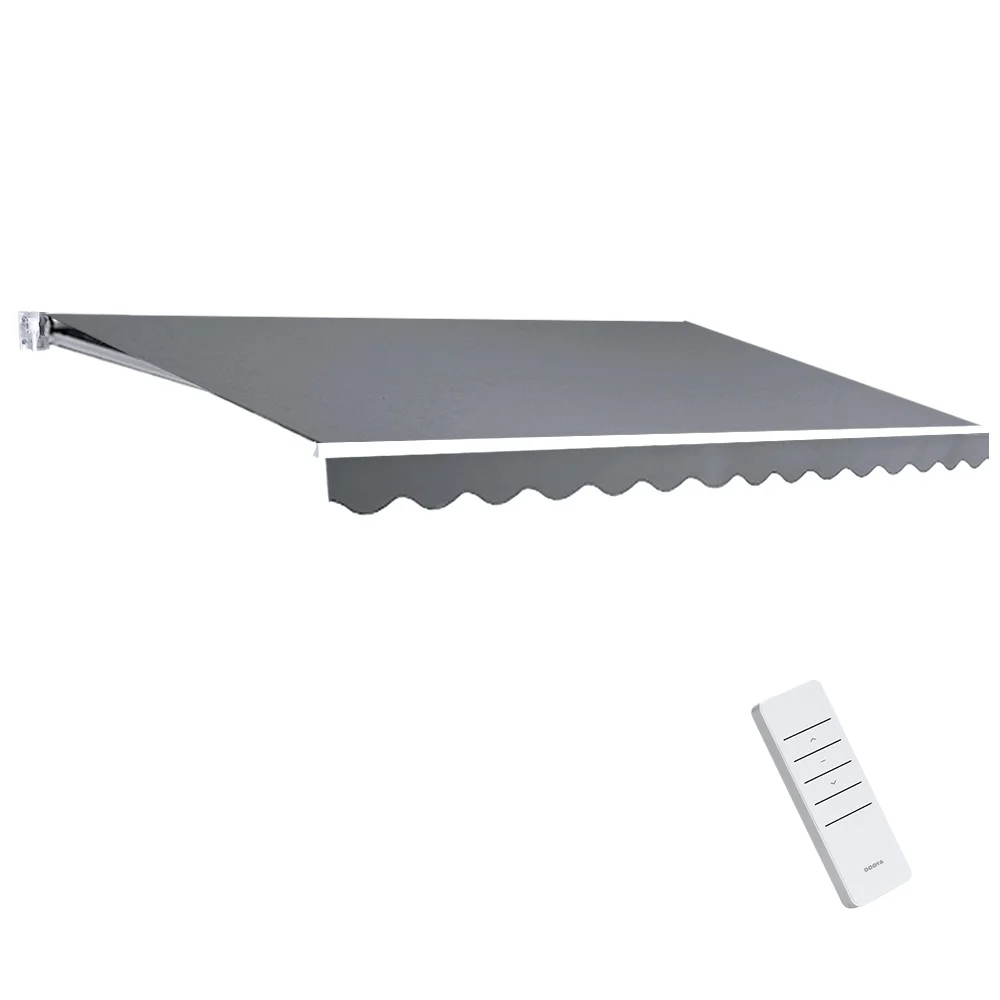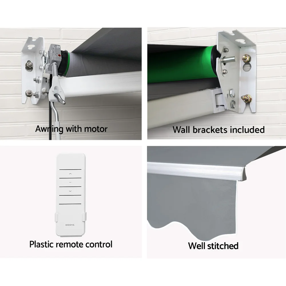 Instahut Motorised 4x3M Retractable Folding Arm Awning - Grey, UV-Resistant Polyester, Remote Control, Aluminium Frame