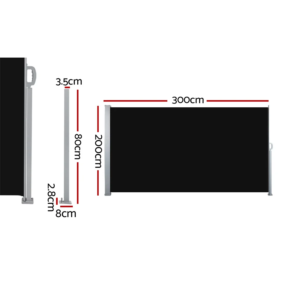 Instahut Retractable Side Awning 2x3M Black, UV Resistant Outdoor Privacy Screen, Tearproof Polyester, Steel Frame