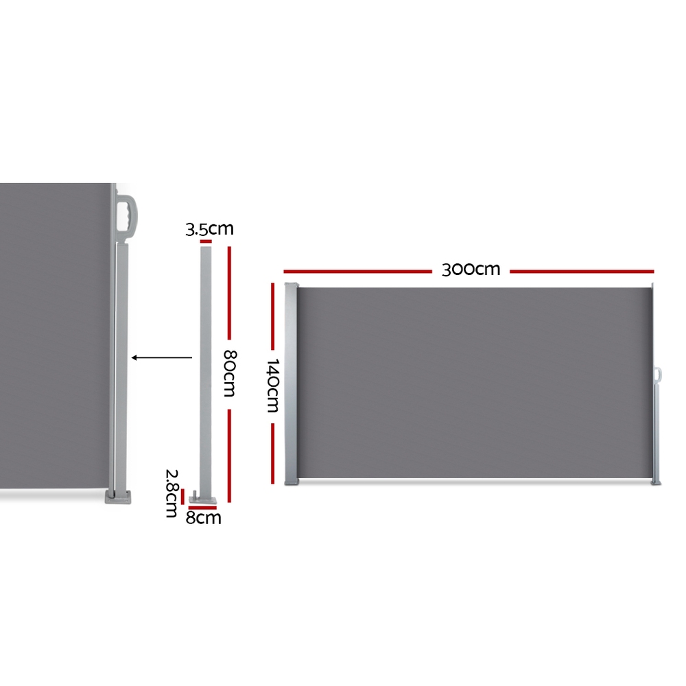 Instahut 1.4x3M Retractable Side Awning Sun Shade - UV & Tear Resistant Polyester, Steel Frame, Easy Installation, Grey