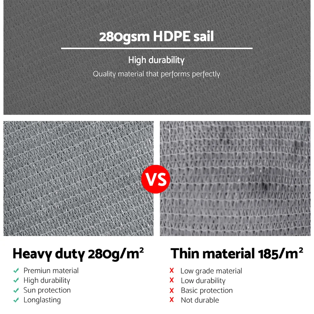 Instahut 6x6m Rectangle Shade Sail | 280GSM Grey Cloth | 98% UV Block | Weather Resistant | 1-Year Warranty