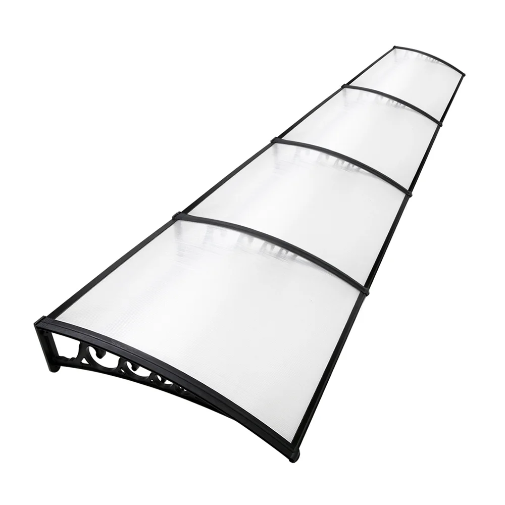 Instahut 1x4m Transparent Window Door Awning, 5mm Polycarbonate Panel, UV Resistant, with Black Plastic Brackets