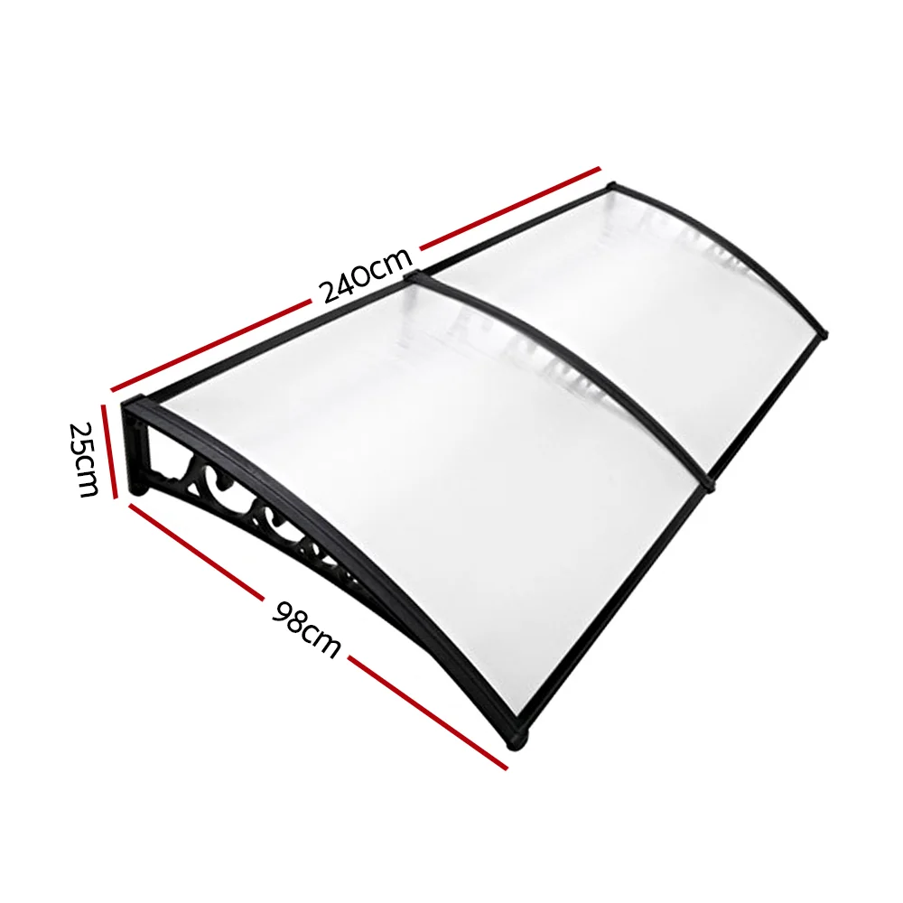 Instahut Transparent Window Door Awning 1x2.4m - Durable 5mm Polycarbonate Panel with Corrosion-Resistant Plastic Frame