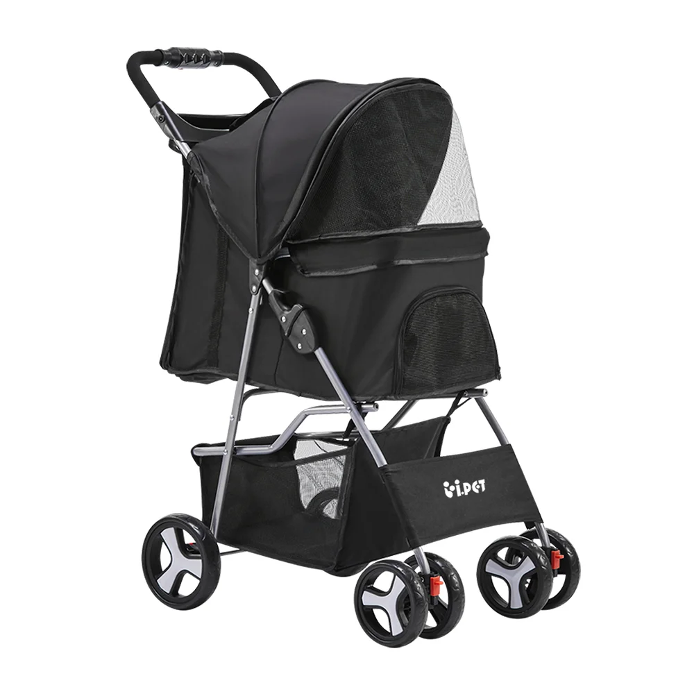 i.Pet 4 Wheel Pet Stroller, Black - Sturdy, Breathable with Mesh Screens, EVA Wheels, 600D Oxford, Easy One-Step Fold