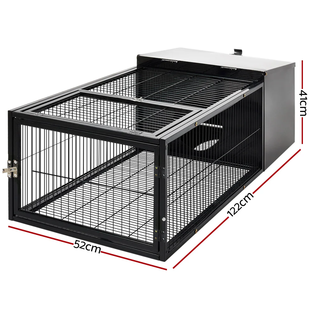 The i.Pet Rabbit Cage 122x52cm Hutch Enclosure Carrier Metal offers a cosy home and private exercise space for rabbits, guinea pigs, chinchillas, and other small pets. Featuring a pitch-roof shelter with a 20cm diameter opening, it provides easy access and ample rest space. A slide-out mesh tray ensures hassle-free cleaning, while the weatherproof metal cage allows for safe outdoor play. Secure lockable openings and a chew-proof frame guarantee security and peace of mind for both you and your pets.