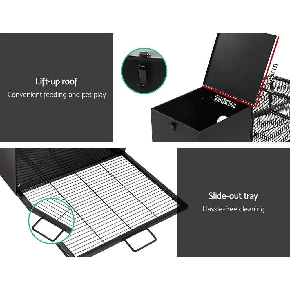 i.Pet Rabbit Cage Hutch 106cm - Indoor Enclosure with Powder Coated Stand, Easy Clean Base & Mobile Wheels