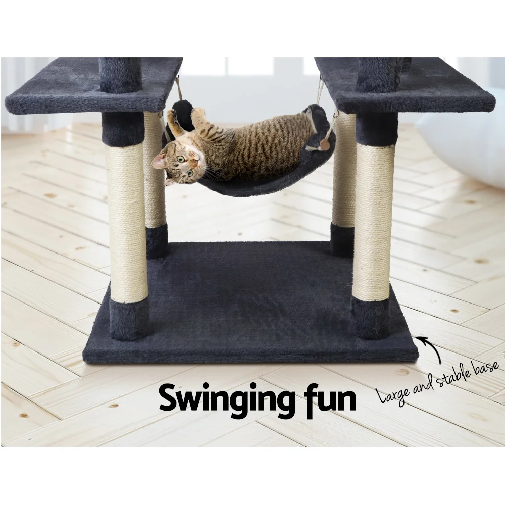 i.Pet 140cm Multi-Level Cat Tree with Sisal Poles, Plush Velvet Cover, Hammock, Bed Cube & Toys in Dark Grey