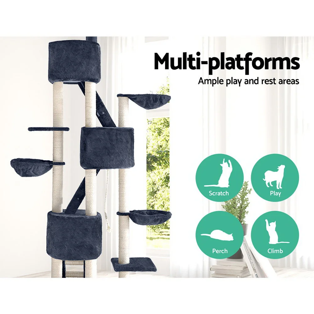 i.Pet 270cm Beige Cat Tree Tower: Floor-to-Ceiling Adjustable Scratching Post with Sisal, Plush Platforms & Stable Base
