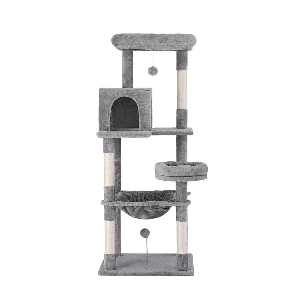 i.Pet 141cm Cat Tree Tower - Sturdy Wooden Condo with Plush Velvet, Sisal Scratching Posts, Hammock, and Bed for Cats