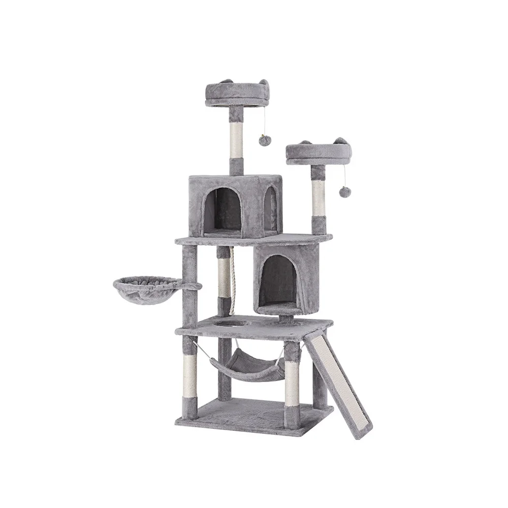i.Pet 161cm Cat Tree Tower in Grey with Plush Velvet, Sisal Posts, Hammock, Cubicles & Stable Wooden Construction
