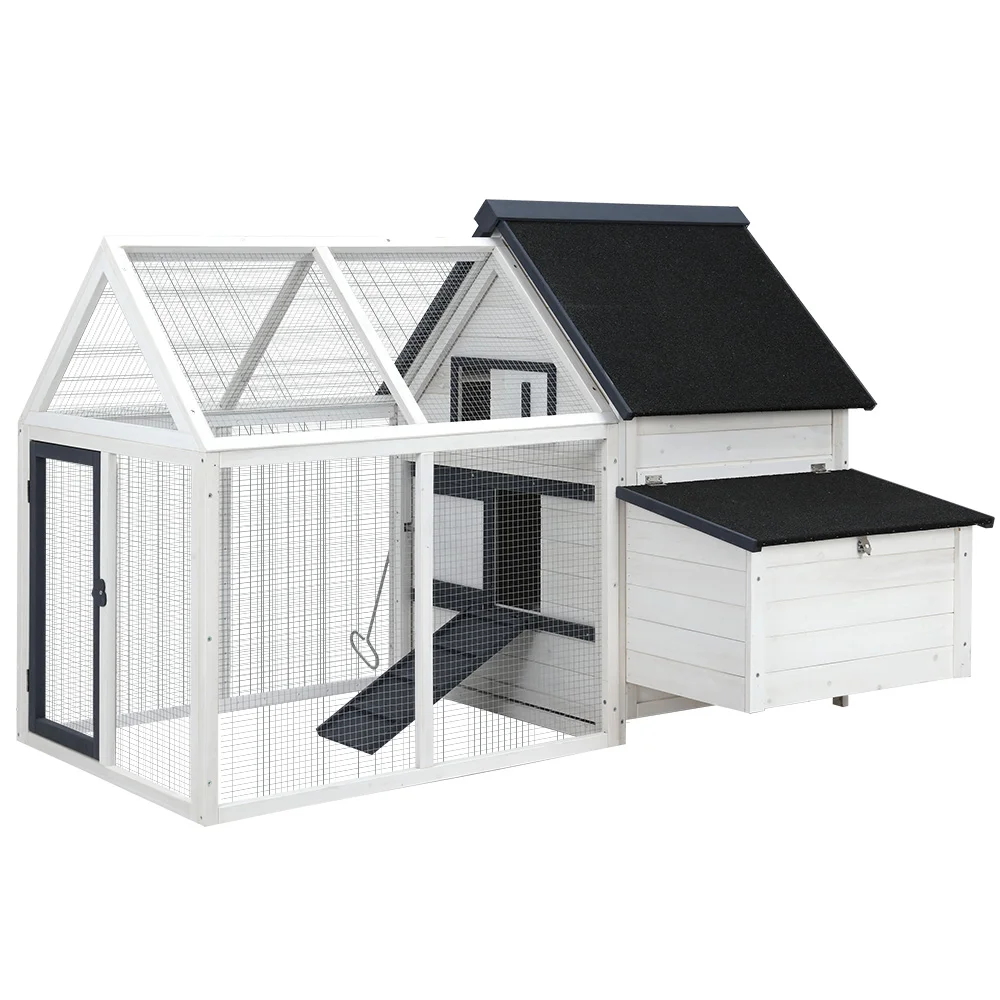 Give your beloved pets a safe and comfortable home to sleep, rest, play, and relax with the i.Pet Chicken Coop Rabbit Hutch. Designed for smaller pets like rabbits, chickens, guinea pigs, and more, this hutch is crafted from solid fir wood and galvanised mesh for long-lasting durability. Its black asphalt felt roof protects against weather extremes, while the spacious play area ensures endless outdoor fun. Featuring a foldable ramp, hatching box, and slide-out tray, this hutch promises convenience and joy for your pets and you.