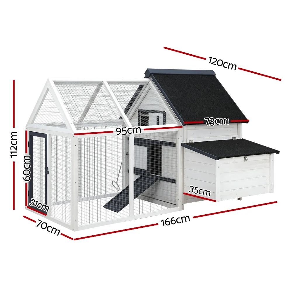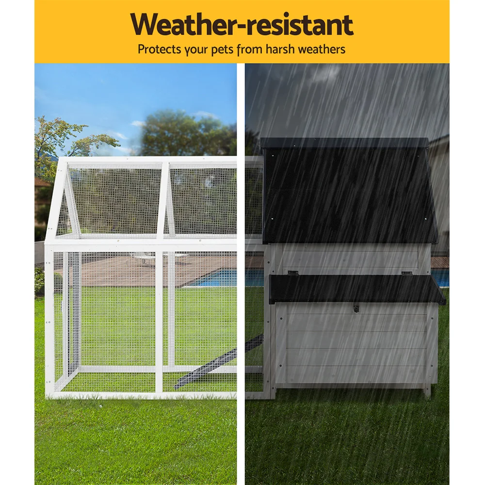 i.Pet Extra Large Wooden Chicken Coop & Rabbit Hutch with Weather-Resistant Fir Wood, 180cm x 53cm x 94cm, Easy Assembly
