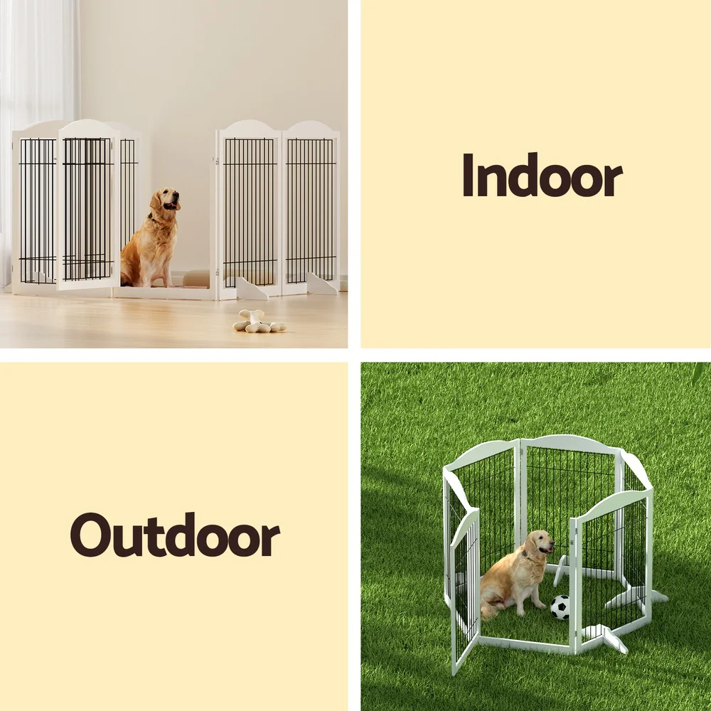 i.Pet 6-Panel Dog Playpen Enclosure - Wooden & Galvanised Wire, Flexible Design, 360cm x 85cm, Indoor/Outdoor Use