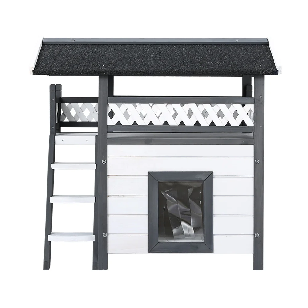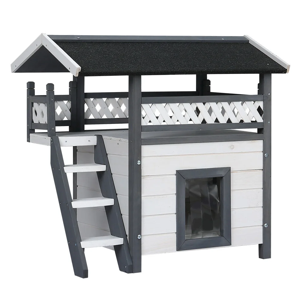 Discover the ultimate home for your small pets with the i.Pet Cat House Outdoor Shelter. This expertly designed hutch features a double-tiered living space with stairs for easy access. Crafted from durable fir wood and a sloped asphalt roof, it offers excellent protection from rain and sun. Convenient entry doors enhance pet comfort and simplify care routines. With easy assembly and a stylish grey and white finish, it's the perfect choice for small animal owners.