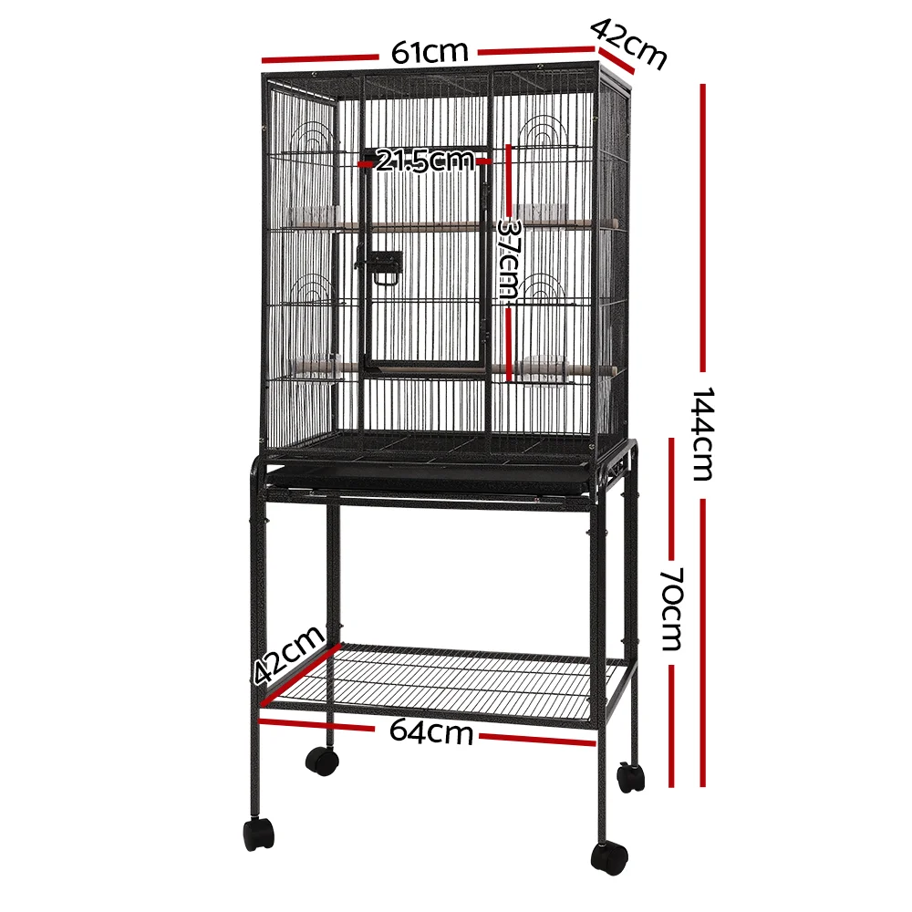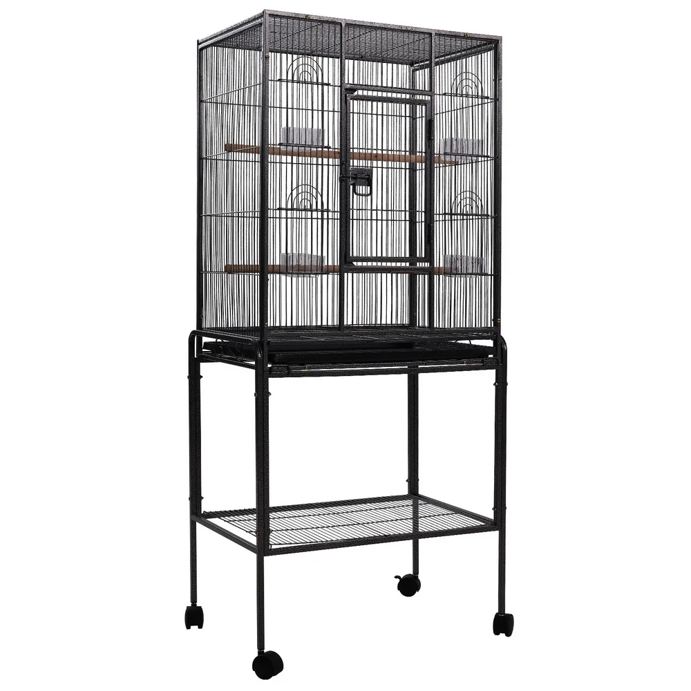 i.Pet 144cm Large Bird Cage Aviary, Black Wrought Iron, Mobile with Lockable Casters, Easy-Clean Tray, Ideal for Birds