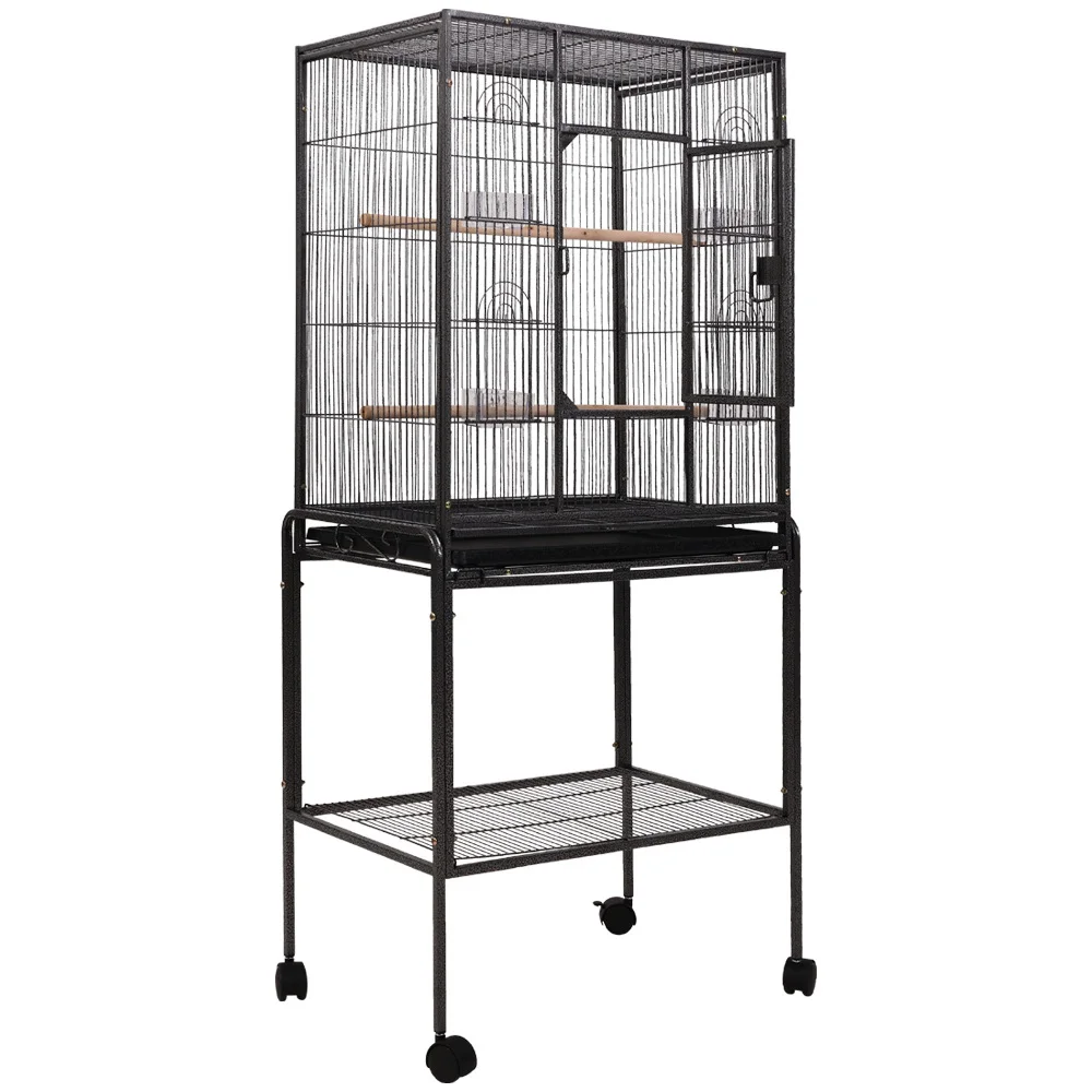 i.Pet 145cm Large Bird Cage Aviary with Open Top, Wrought Iron, Stainless Steel Feeders, Easy Clean Tray & Wheels