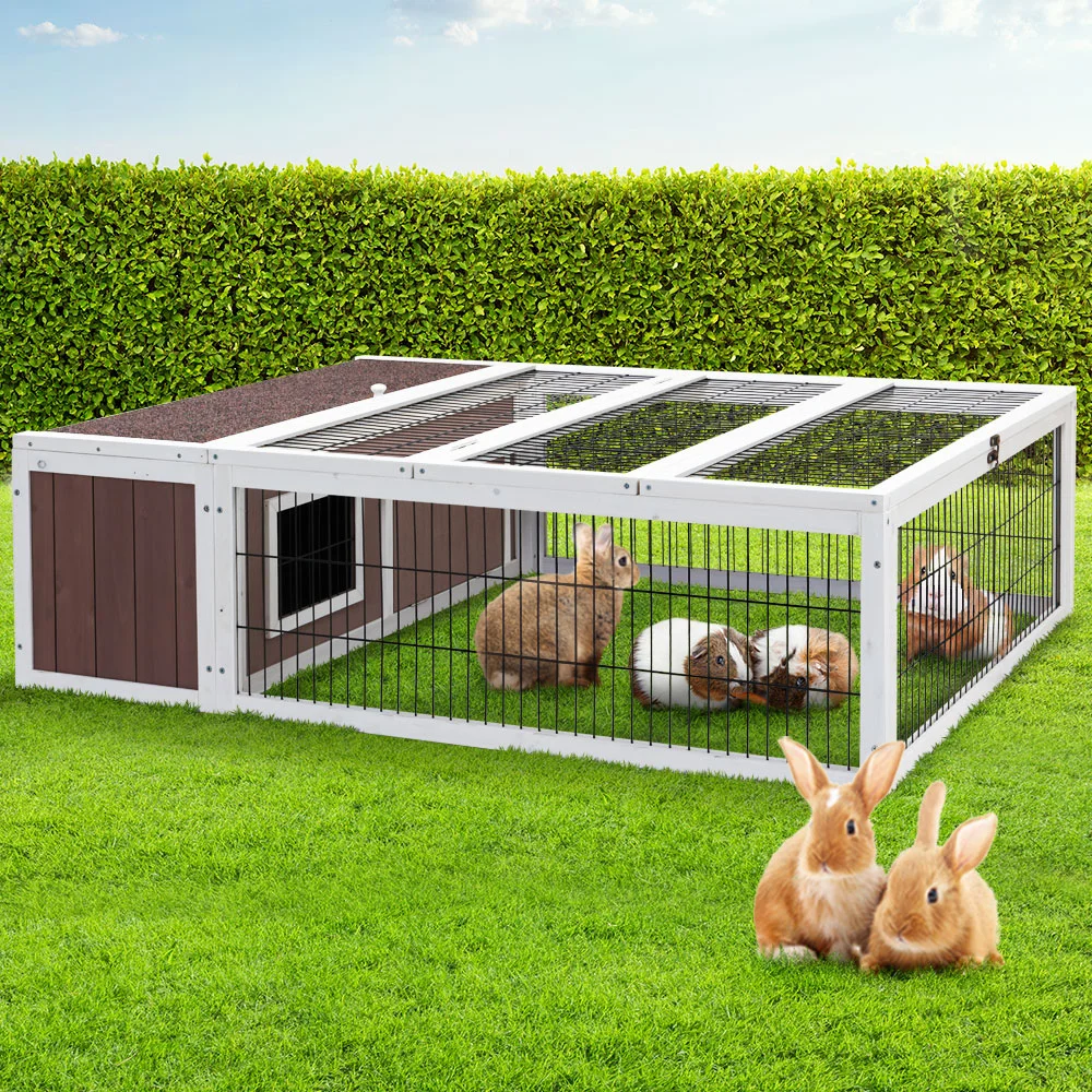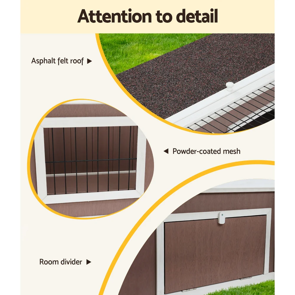 i.Pet Rabbit Hutch 124x90x35cm Outdoor Wooden Cage - Fir Wood, Asphalt Roof, Powder Coated Mesh, Easy Assembly