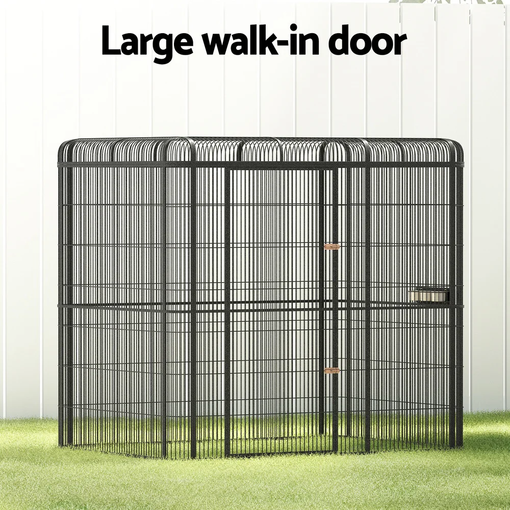 Give your feathered friends the luxury they deserve with the i.Pet Bird Cage Large Walk-in Aviary. Crafted from durable wrought iron with a protective coating, this spacious aviary offers a safe and secure environment for large birds, reptiles, or even as a temporary shelter for your dog. Featuring a large walk-in door, swing-out feeder doors, and three stainless steel food cups, this cage ensures easy access and convenient feeding. Suitable for parrots, macaws, and cockatoos, the i.Pet Aviary is your pet's ideal sanctuary. Comes with a 1-year warranty.