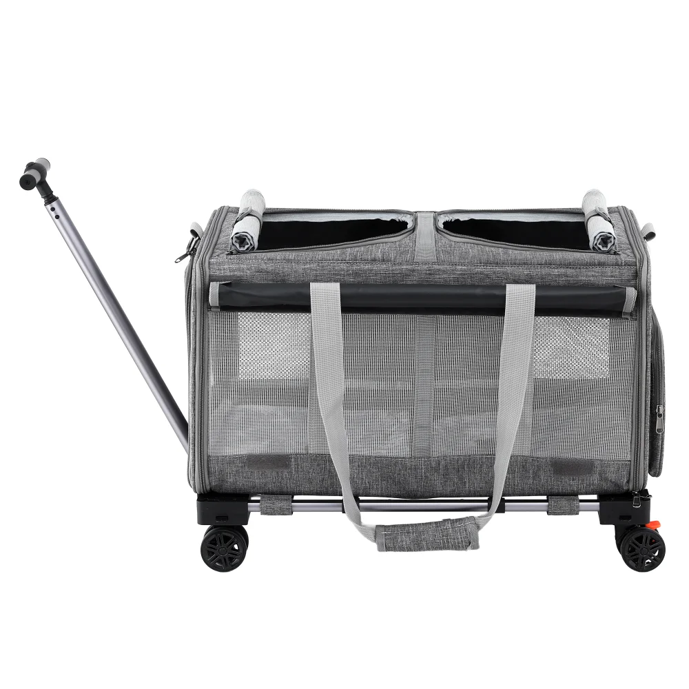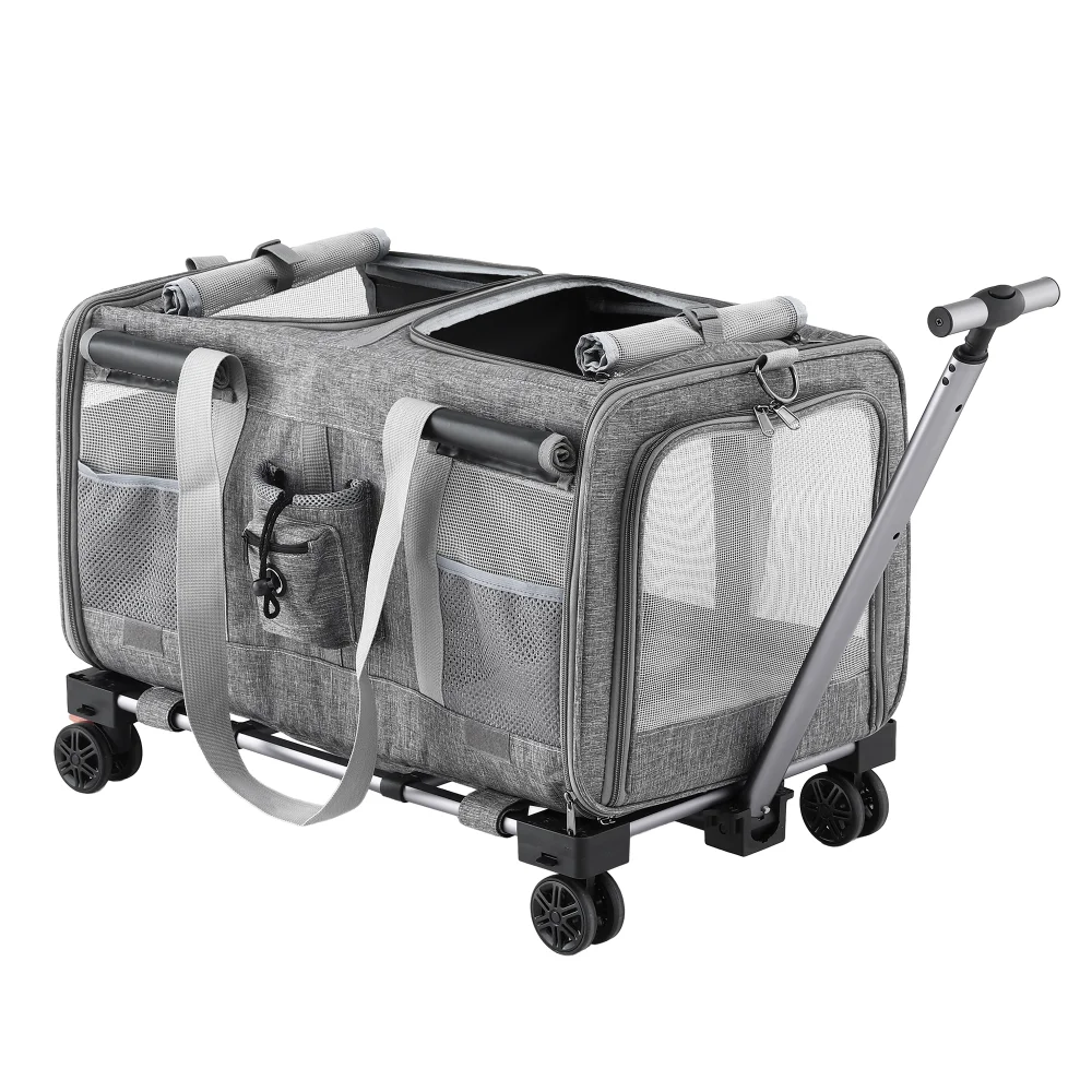 i.Pet Premium Grey Pet Carrier for Cats & Dogs, Foldable Trolley with Swivel Wheels, Oxford Fabric, 50kg Capacity