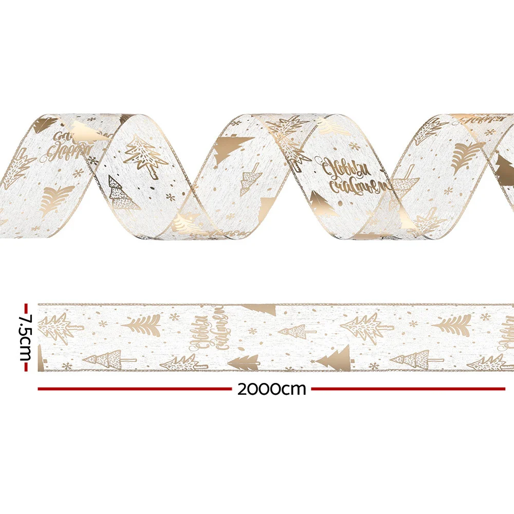 Elevate your holiday decor with the Jingle Jollys 20M Christmas Ribbon Roll. Made from premium nylon with a luxurious gold-sewn edge, this ribbon features charming Xmas tree patterns that add a warm, festive touch to any setting. Whether adorning your Christmas tree, garlands, wreaths, or enhancing doorways and dining spaces, its generous 20M length ensures ample material for all your creative projects. Vibrant by day and dazzling under holiday lights, this versatile ribbon is perfect for transforming your space into a seasonal wonderland. Order now to add elegance to your celebrations!