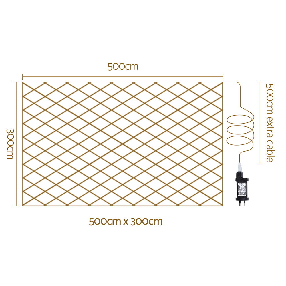 Jingle Jollys 5m x 3m Christmas Net String Lights, 600 Colourful LED Beads, Outdoor Indoor, 8 Modes, Low Voltage
