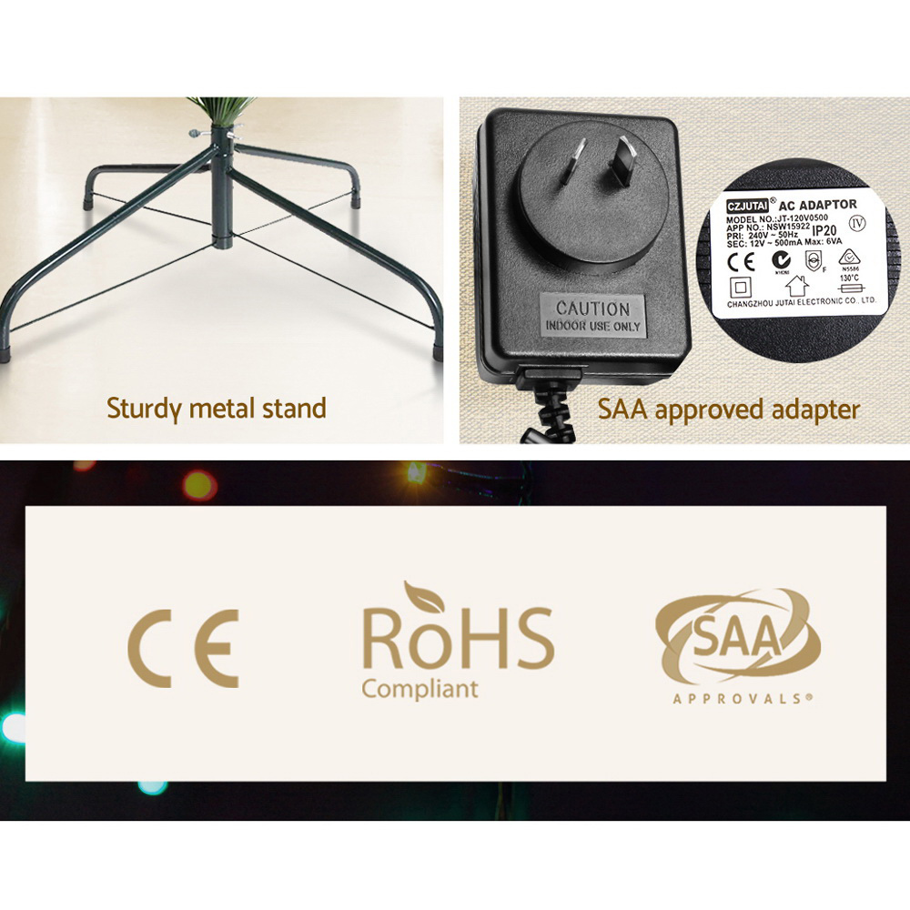 Jingle Jollys 1.8m Optic Fibre LED Christmas Tree - Multi-Colour Lights, PVC Tips, Metal Frame, 6ft Tall - Easy Setup