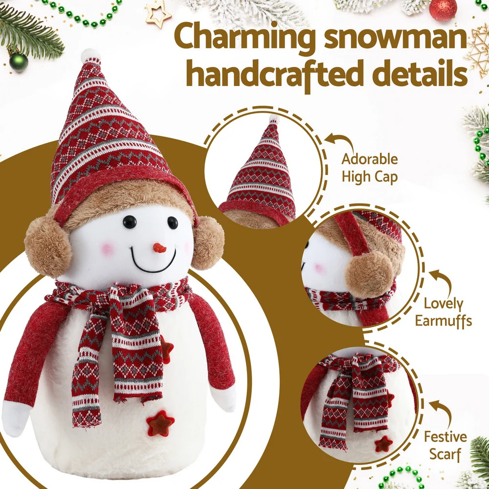 Jingle Jollys Christmas Snowman Handicraft Ornament 60cm Plush Wool & Foam Holiday Decoration with Red Scarf & Hat