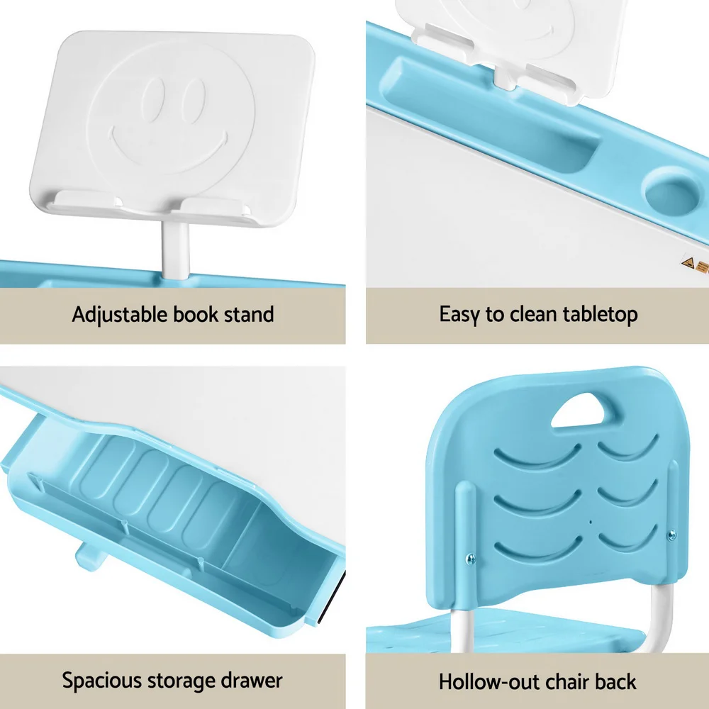 Keezi Adjustable Kids Study Desk and Chair Set with LED Lamp - Ergonomic Blue Design, Non-Toxic Material, 3+ Years