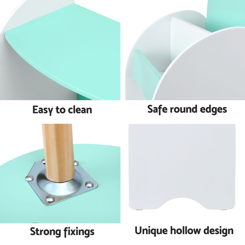 Keezi Kids Bookshelf with Table and Chair Set, MDF and Pine, 2-in-1 Bookcase Toy Storage, Child-Safe, White Green