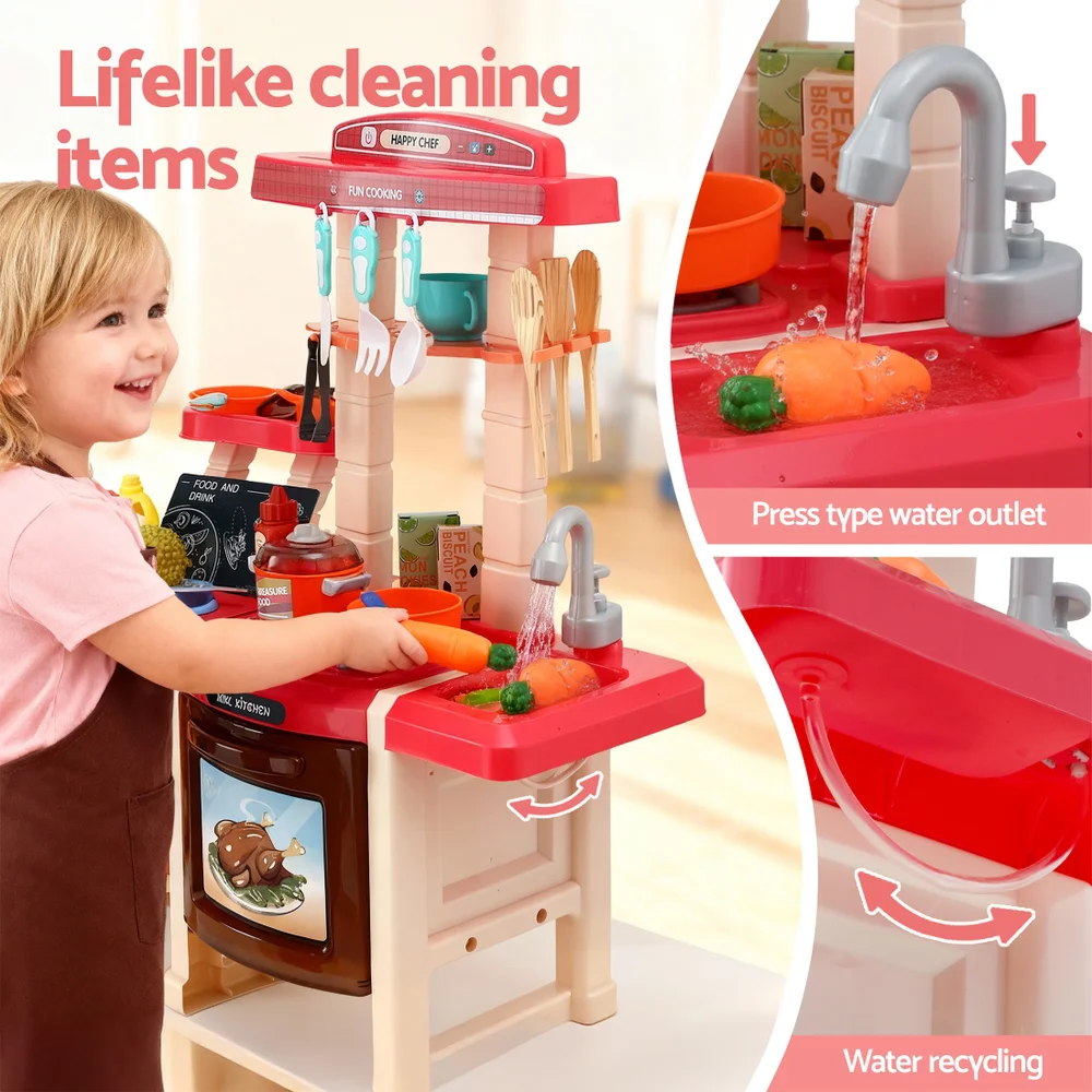 Keezi Kids Kitchen Pretend Play Set - 46pc Cooking Accessories, Sound & Light Effects, Real Water Faucet, 52x24x70cm