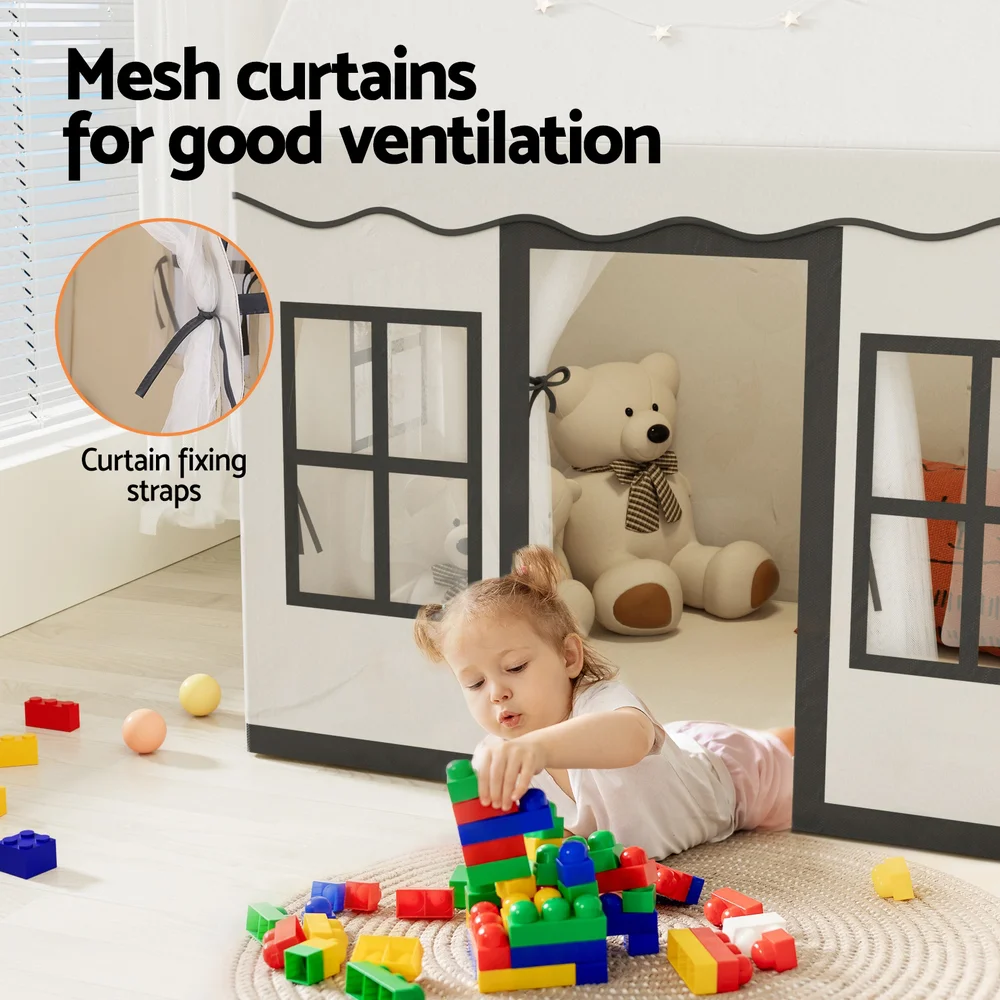 Keezi Kids Play Tent Castle with Floor Mat & String Ball Lights, 134x103cm - Durable Polyester, Indoor/Outdoor Fun
