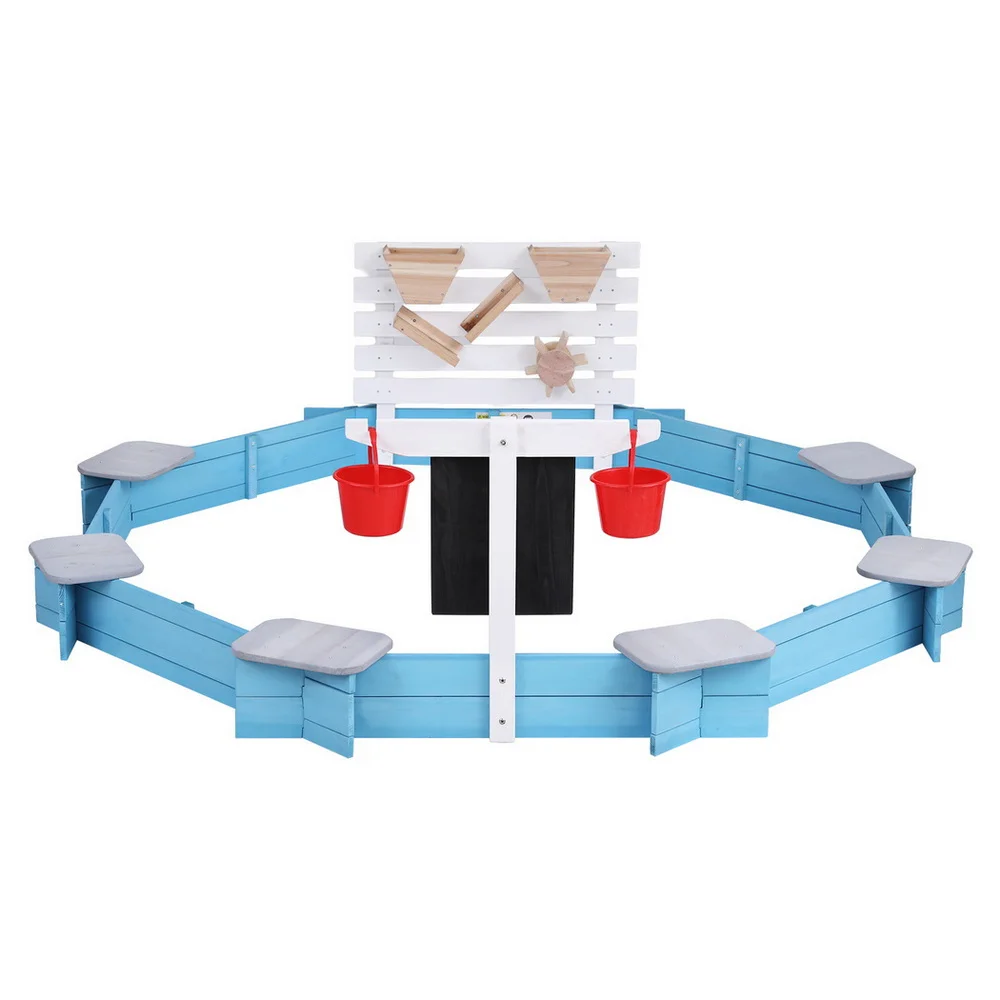 Transform your backyard into a fun-filled oasis with the Keezi Kids Sandpit. This robust round sandpit, crafted from strong, treated timber, is designed for endless outdoor enjoyment. With ample space to accommodate up to six children, it includes a sand funnel, spiral, two buckets, and a drawing board to inspire creativity and interactive play. The comfortable bench seat offers a cosy spot to rest, while the treated timber ensures durability against wood rot and insects. Certified with EN71 Toy Safety standards, the Keezi Kids Sandpit is the ultimate blend of active fun and safety for children aged 3-6.