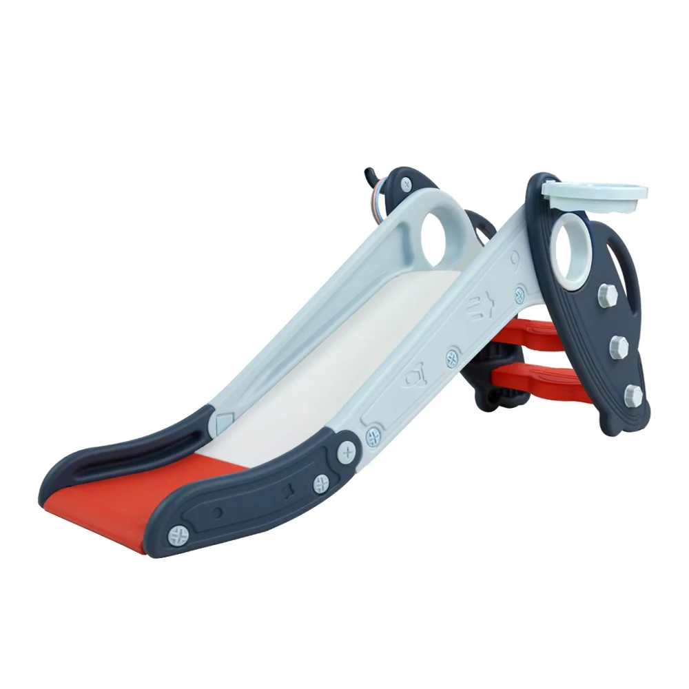 Unleash endless fun and physical activity with the Keezi Kids Slide Set! This 3-in-1 playground marvel features a long slide, a basketball hoop, and a ring game, complete with a bonus ball and pump. Made from durable, high-density non-toxic material, its triangle force structure and non-slip gasket design ensure safety and stability. With wide, gapless steps, safe grip handles, and a foldable design, it's perfect for indoor and outdoor play. Easy to assemble and AS8124 approved, it's the ideal gift for your little ones!