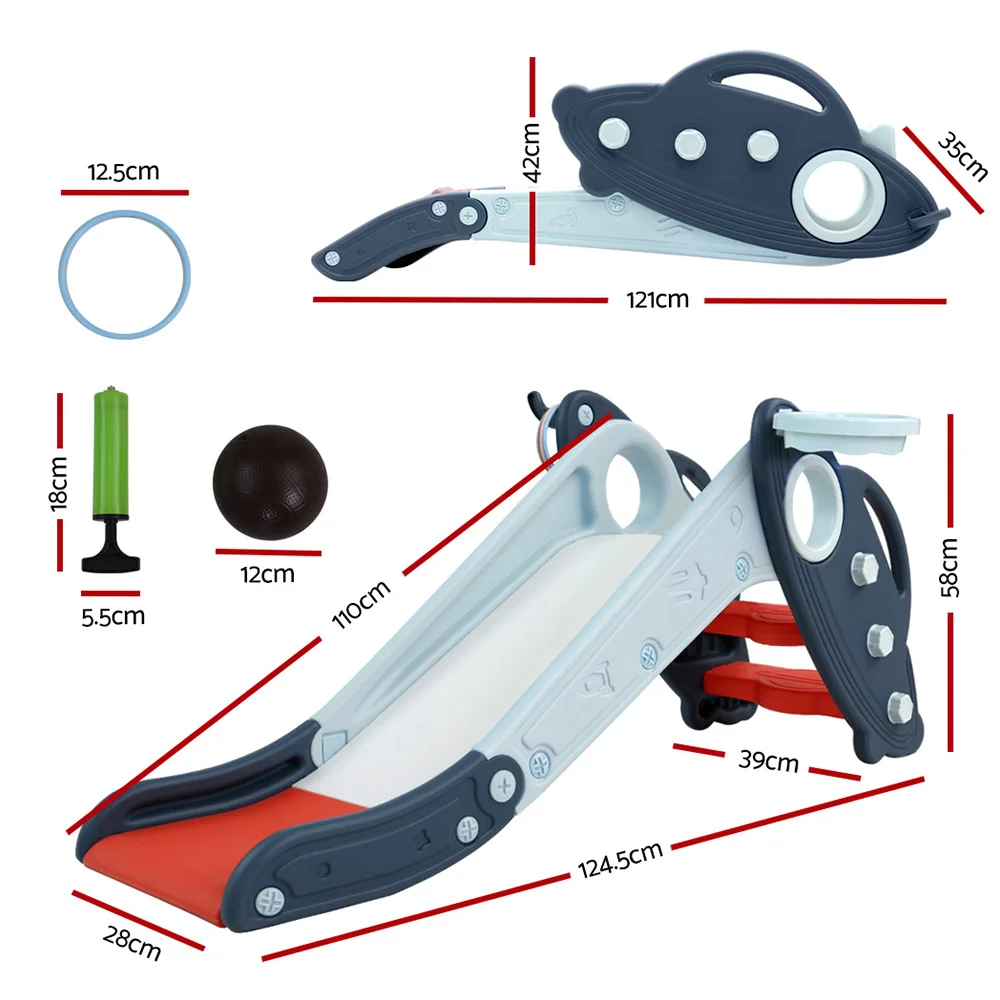 Keezi 3-in-1 Kids Slide Set with Basketball Hoop & Rings, 110cm Long, Durable Non-Toxic Material, Indoor/Outdoor Fun