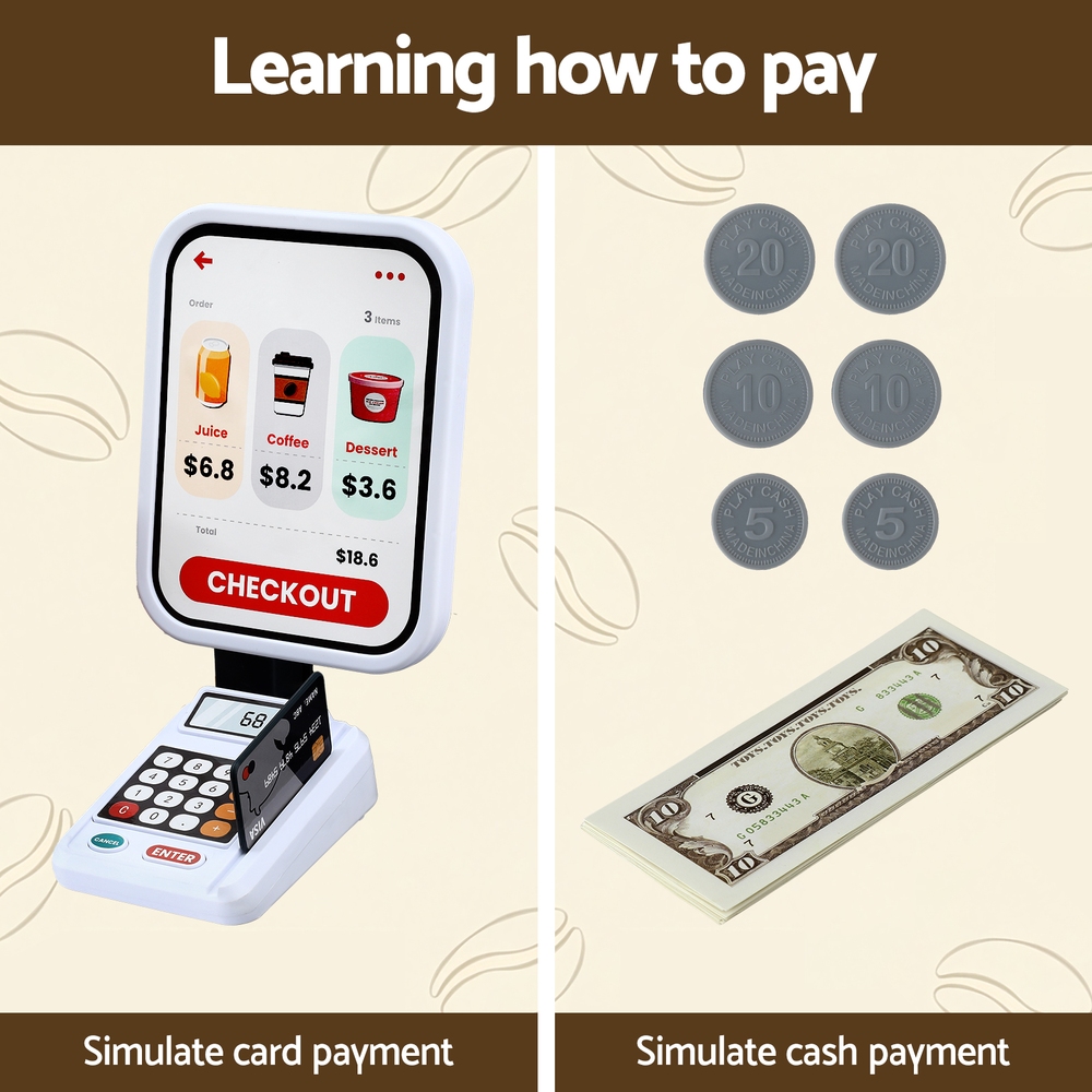 Keezi Kids Supermarket Playset: 48PCS Role Play Toy with Scanner, Multicolour, 48x28x57CM, Educational Fun for Ages 3+