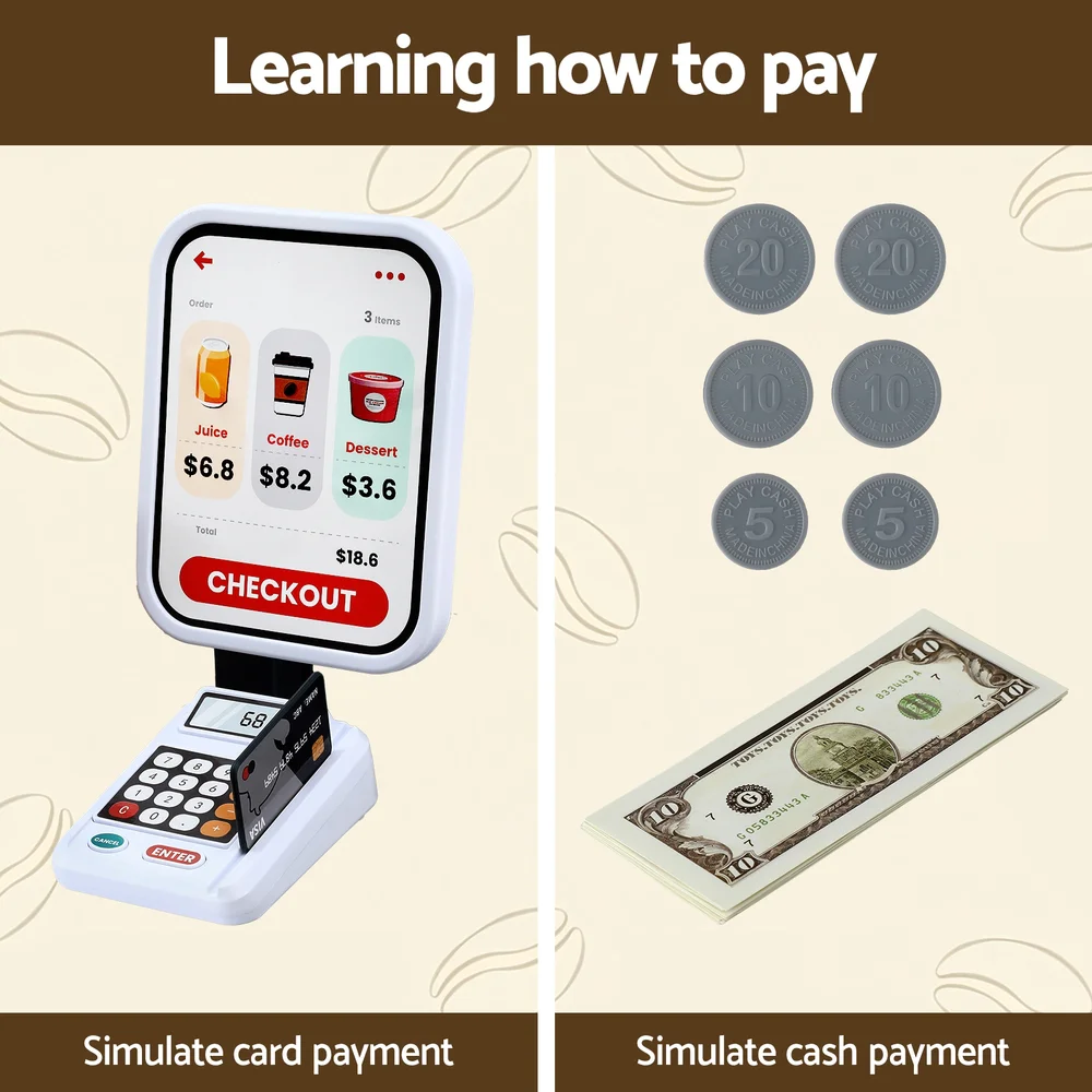 Keezi Kids Cash Register Playset - Colourful 18pc Role-Play Toy with Scanner, Calculator, Money, 31x11.5x15cm, Ages 3