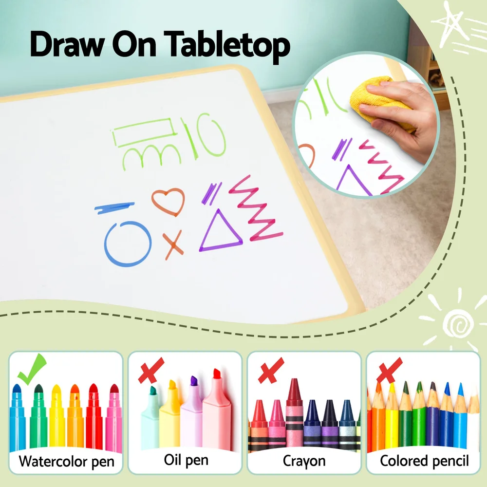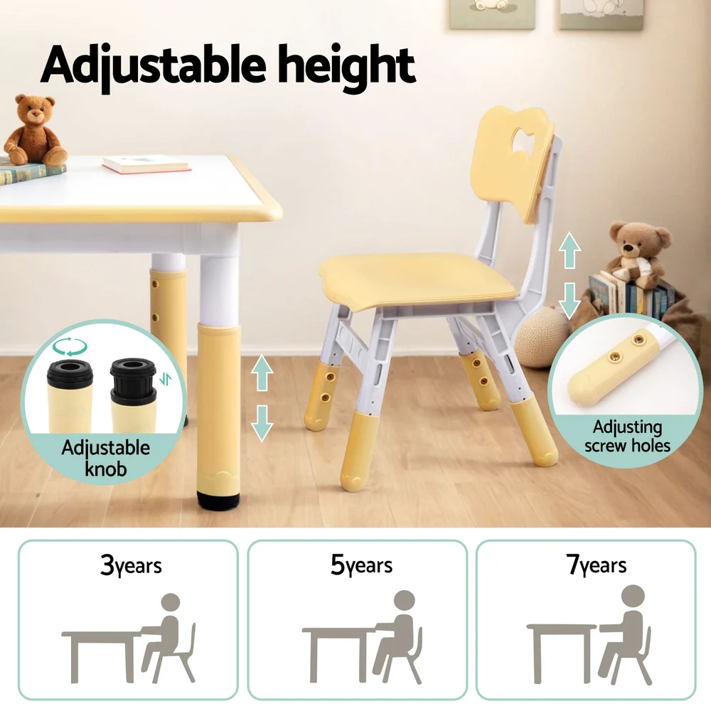 Keezi Kids Table and 4 Chairs Set with Draw-On Tabletop, Height Adjustable, Non-Toxic PP, Yellow and White, Ages 3+