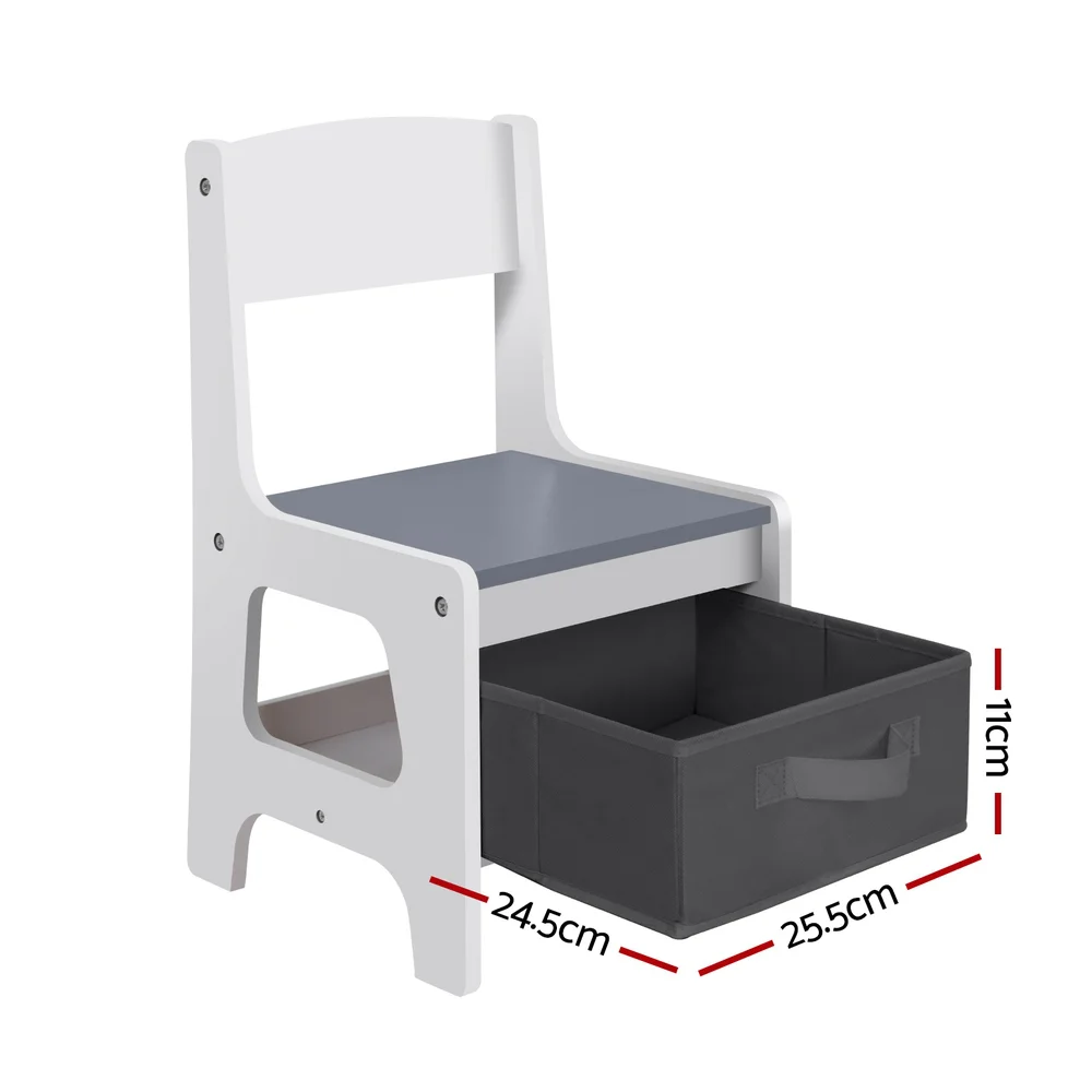 Keezi Kids Table & Chairs Set - Grey, MDF & Non-Toxic Material, Chalkboard Desk, Hidden Storage, Ages 3+, Easy Assembly