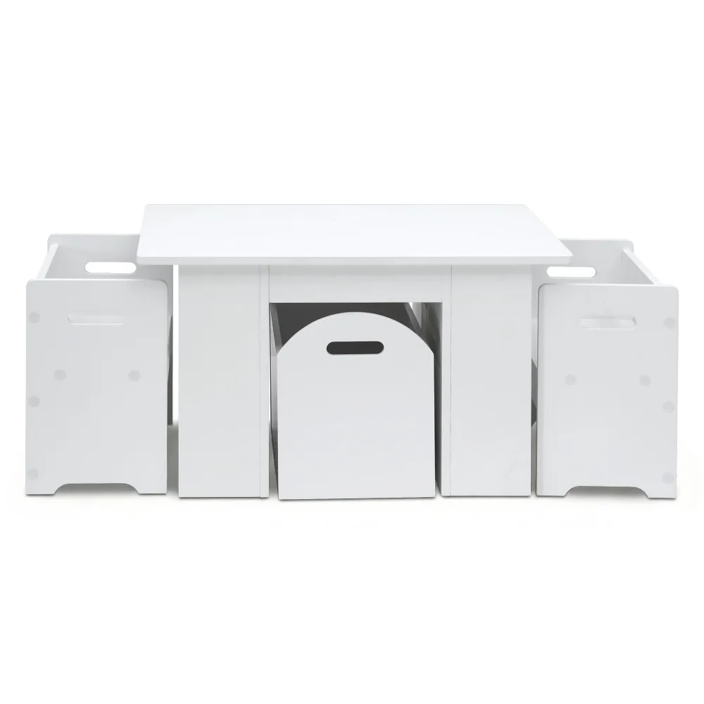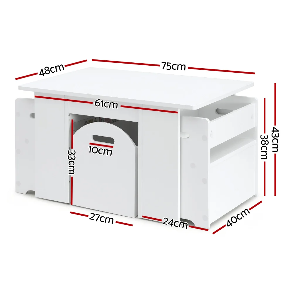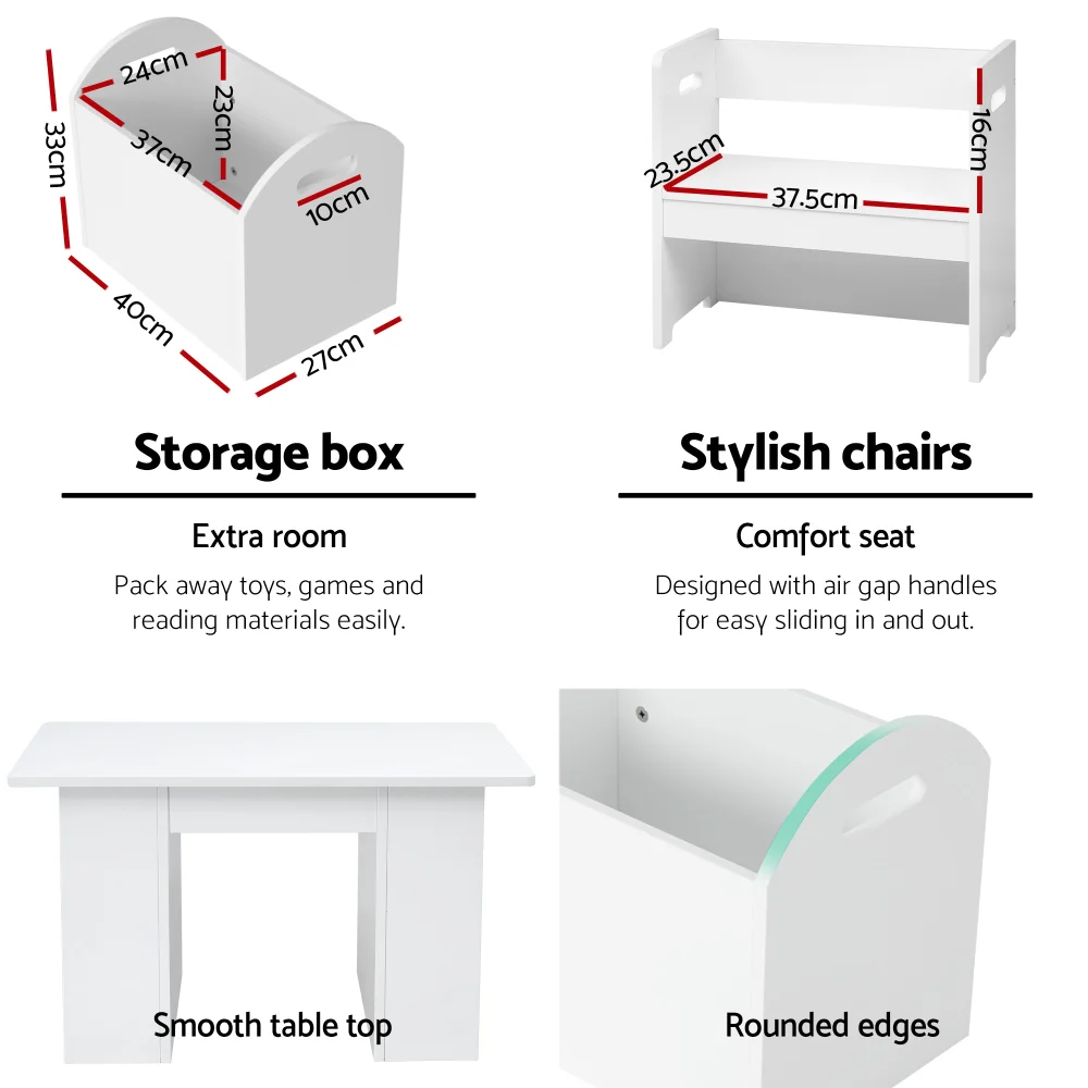 Keezi 3PCS Kids Table & Chairs Set with Storage Box, Eco-Friendly MDF, Kid-Safe Design, White 75x48x43cm, Easy Assembly