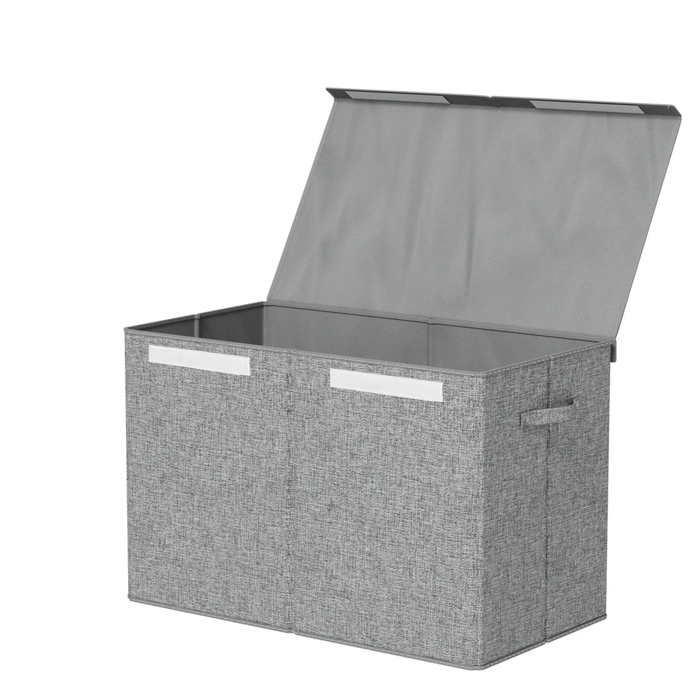 Keezi Large 83L Toy Box Chest Storage - Foldable Linen Fabric with Flip-Top Lid, Dustproof, No Assembly Required