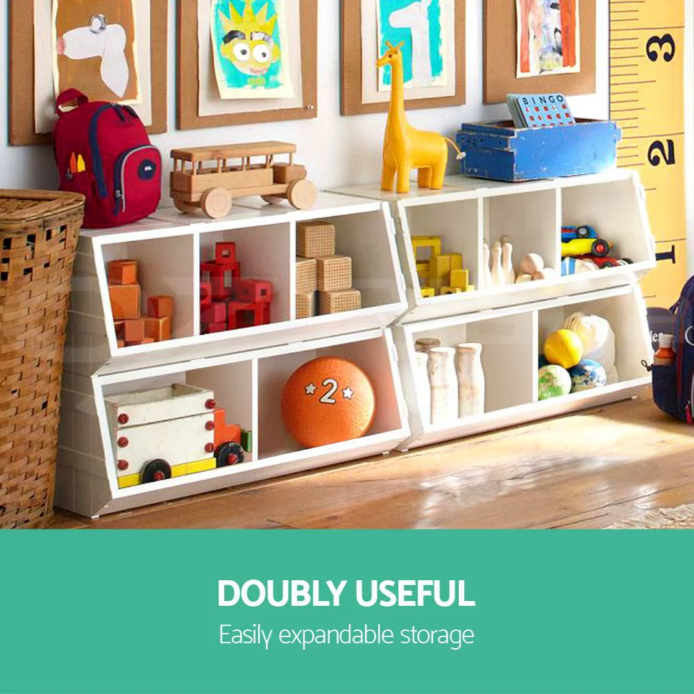 Keezi Kids Toy Box Bookshelf Storage Organiser - Eco-Friendly E1 MDF, Stackable Design, Easy Assembly, White Finish