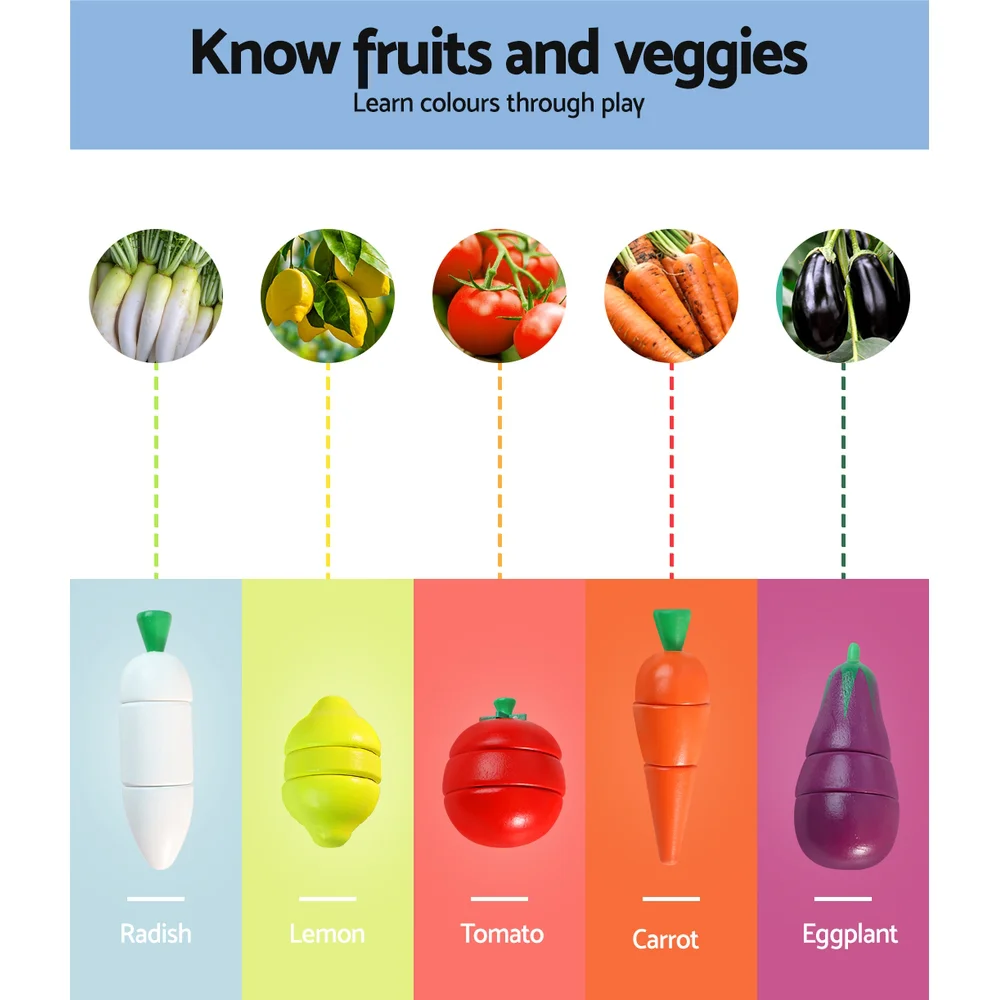 Introducing the Keezi Kids Kitchen Play Set, designed to nurture creativity and cognitive skills in children aged 3 and up. This 29-piece wooden set features vibrant fruits, vegetables, and kitchenware for endless role-playing fun. With magnetic connections for realistic slicing and durable, non-toxic materials, it's both safe and engaging. Perfect for birthdays or seasonal gifts, it promises hours of imaginative play while teaching life skills. Adult supervision is recommended for added safety.