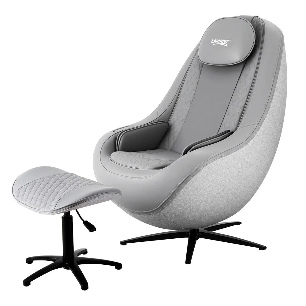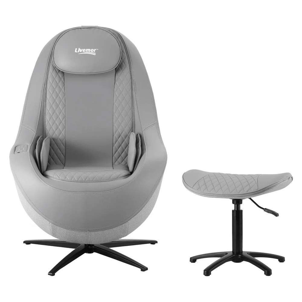 Livemor 4D Massage Chair Electric Recliner, Grey, Full-Body Home Massager with Heated Therapy & Bluetooth Speakers