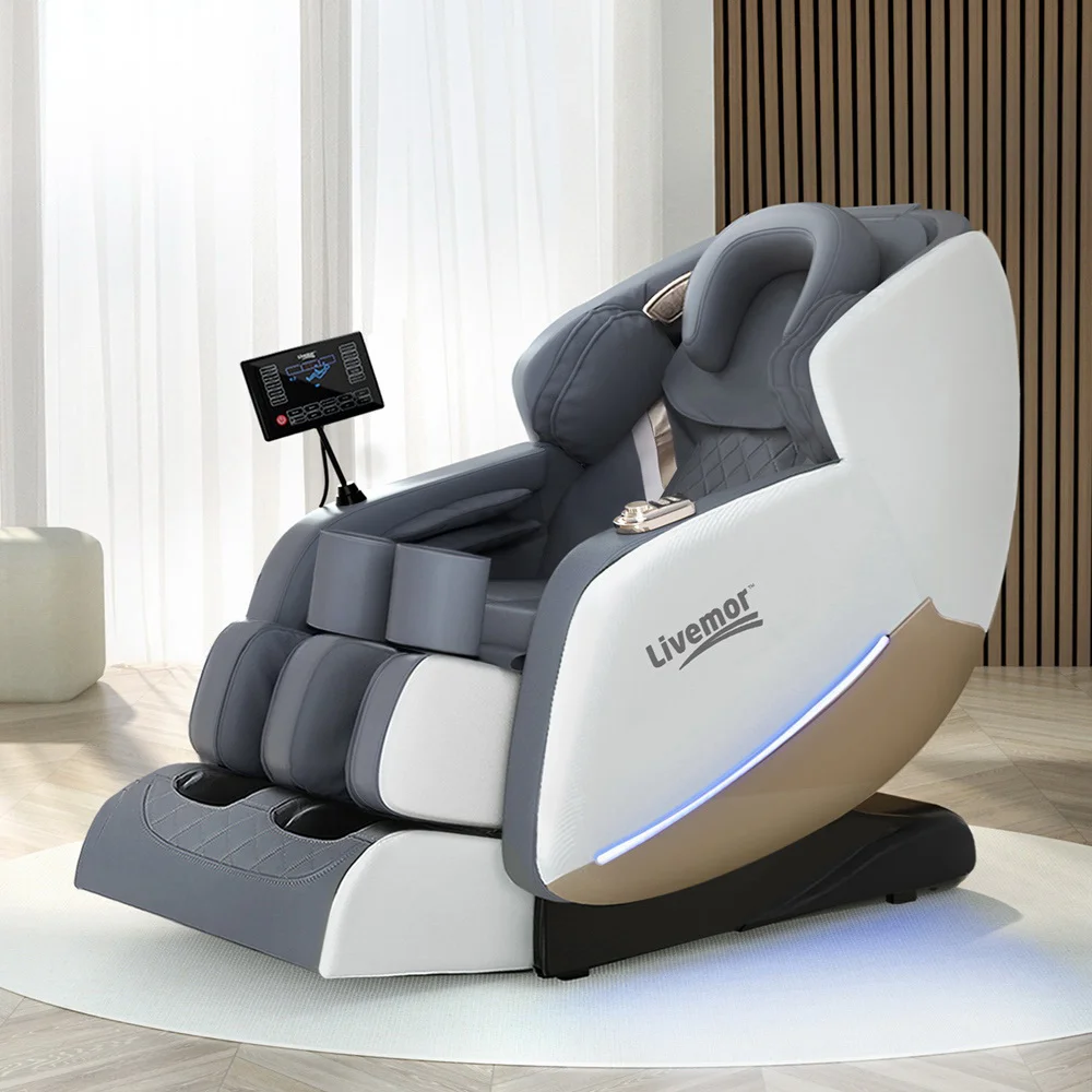 Livemor Beryl Electric Massage Chair, Leather, Grey - Full Body Recliner with Zero Gravity, Heated Therapy & Bluetooth
